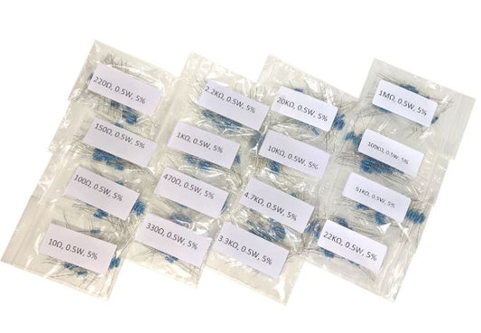 Assorted Resistor Kit 10 Ohm to 1M Ohm (640pcs, 5%, 1/2W)