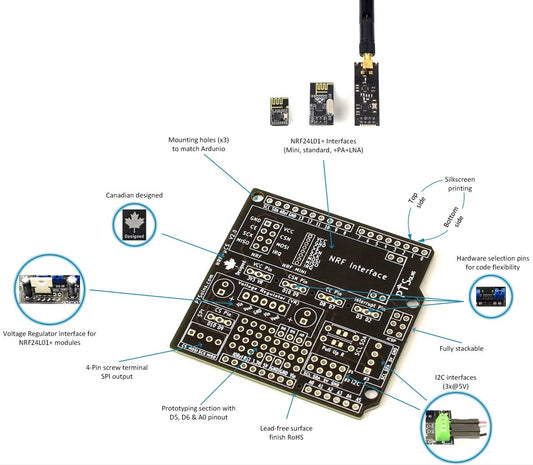 NRF-Shield nRF24L01 RF PCB Microcontroller Shield for Arduino Uno
